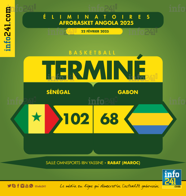 L’équipe nationale du Gabon de basketball a concédé sa deuxième défaite d’affilée dans cette phase retour des éliminatoires de l’Afrobasket 2025, s’inclinant lourdement face au Sénégal (102-68) ce samedi après-midi au gymnase omnisports Ibn Yassine de Rabat (Maroc). Après avoir été battues la veille par le Cameroun (65-82), les Panthères n’ont pas su relever la tête et ont une fois de plus subi la loi d’un adversaire largement supérieur.