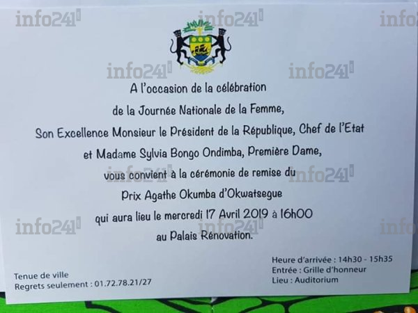 Le carton d’invitation de la cérémonie de remise du prix de la femme à laquelle n’a pas pris part Ali Bongo