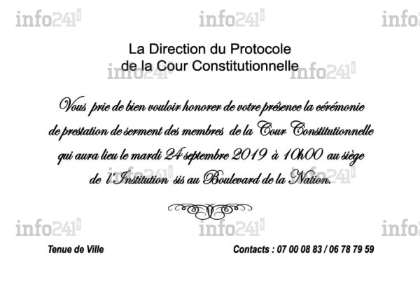 Le carton d’invitation de la cérémonie de ce mardi à la Cour constitutionnelle