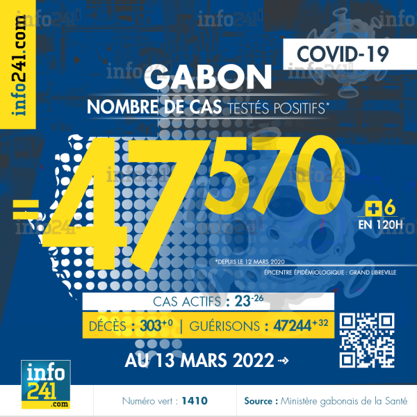 Coronavirus : le bilan épidémiologique du Gabon au 13 mars 2022 © 2022 D.R./Info241