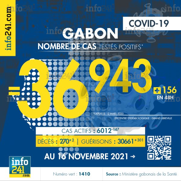 Coronavirus : le bilan épidémiologique du Gabon au 16 novembre 2021 © 2021 D.R./Info241