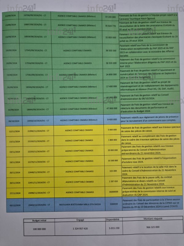 Ce samedi 6 janvier 2025, plusieurs documents compromettant ont fuité sur la toile, exposant les nombreuses dépenses engagées par la CNAMGS en 2024. Ces informations détaillent des montants exorbitants et des affectations budgétaires qui suscitent l’indignation dans l’opinion publique.