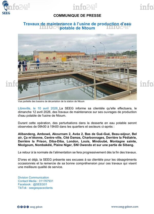Cette baisse de pression, voire cette coupure totale attendue dans les robinets de nombreux ménages, est planifiée. L’entreprise justifie cette situation par la réalisation de travaux de maintenance sur ses ouvrages de production d’eau potable situés à la station de Ntoum. Ces opérations d’entretien technique régulières visent, selon la direction de la SEEG, à garantir in fine une meilleure qualité de service aux usagers.