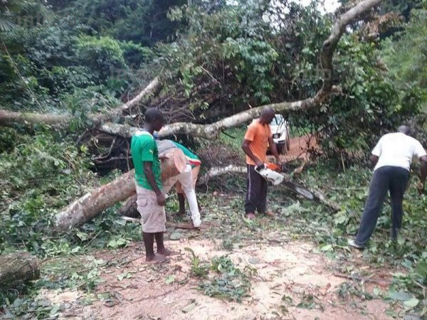 L’arbre coupée sur la route d’Okondja après le passage de la caravane