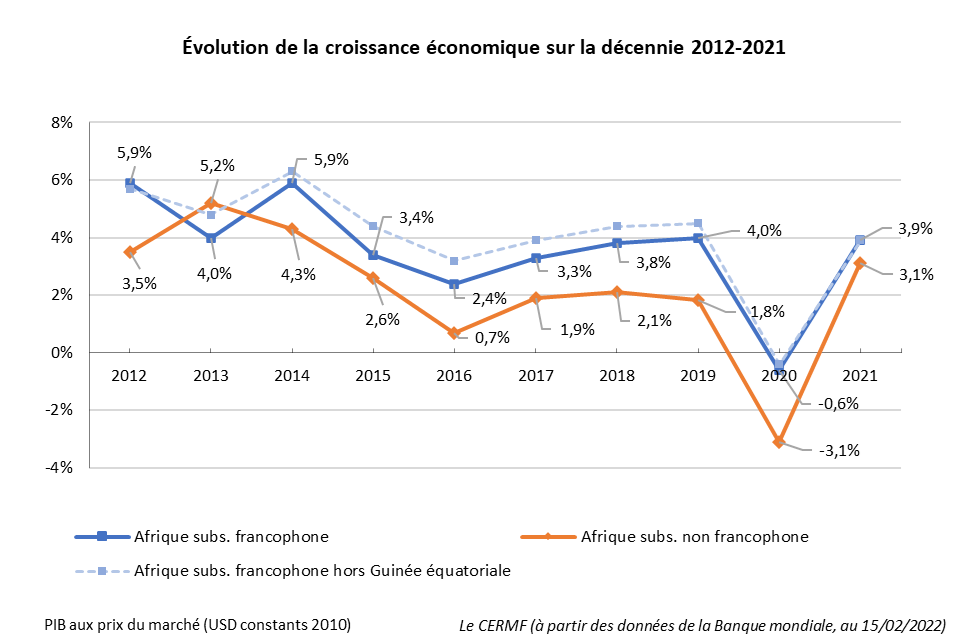 Les importants progrès réalisés par le Gabon ne sont pas un cas isolé en Afrique subsaharienne francophone, qui continue à être le moteur de la croissance africaine. En 2021, et bien qu’ayant déjà mieux résisté à la grave crise économique internationale de l’année précédente, liée à la pandémie, cet ensemble de 22 pays a globalement réalisé les meilleures performances économiques du continent pour la huitième année consécutive et la neuvième fois en dix ans, tout en en demeurant la partie la moins endettée. Sur la période 2012-2021, soit dix années, la croissance annuelle de cet ensemble s’est ainsi établie à 3,6 % en moyenne (4,1 % hors cas très particulier de la Guinée équatoriale, dont la production pétrolière a baissé presque aussi vite qu’elle n’avait augmenté au début des années 2000), contre 2,2 % pour le reste de l’Afrique subsaharienne.