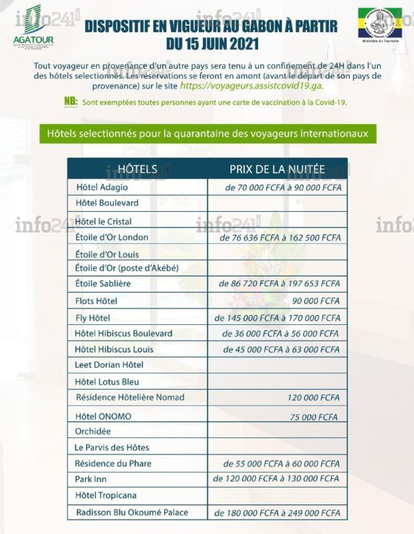 Que vous soyez gabonais ou voyageur international, depuis ce mardi 15 juin le Gabon vous impose désormais une quarantaine obligatoire de 24h dans un hôtel à vos frais. Selon l’arrêté n°0381/PM de 7 articles pris hier par la Première ministre, cette quarantaine ne concerne que les voyageurs débarquant à l’aéroport international de Libreville. Ils devront présenter toujours un test PCR Covid-19 de moins de 72h, se soumettre à un nouveau test PCR à leur arrivée et avoir réservé une chambre d’hôtel d’une nuit au minimum.