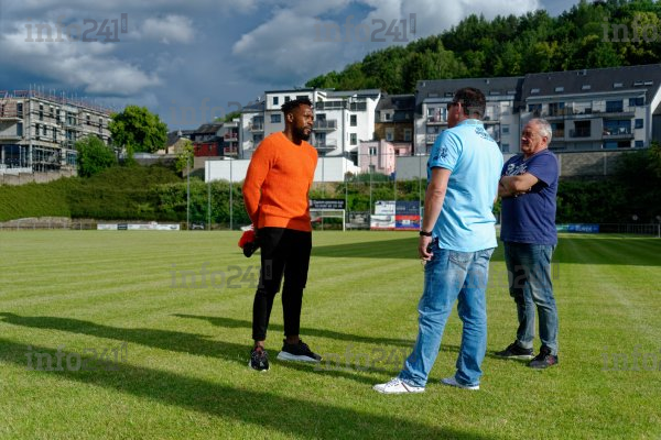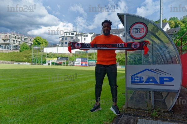 Le nouveau joueur de Rodange arborant l’écharpe du club