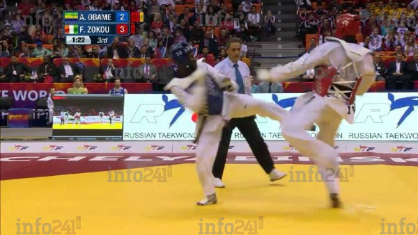 Alors qu’une égalité parfaite ponctuait le combat, c’est finalement à 3 secondes du gong final que Firmin Zokou marquera les 3 points qui feront la différence face à son adversaire. Le combat coulait sur égalité parfaite de 5 à 5 lorsque Firmin Zokou va surprendre le Gabonais avec un coup de pied le touchant à la tête concédant la victoire à son adversaire. Score final 8-5.