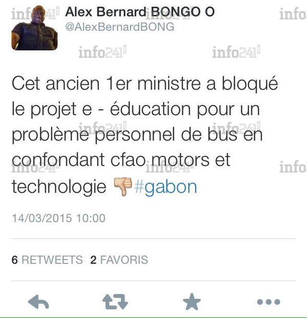 Le 14 mars dernier, monsieur Alex Bernard Bongo Ondimba et une certaine Caroline Sitault se sont laissés aller à une série de tweets à mon sujet. Dans l’un d’entre eux, le premier cité parle d’un premier ministre qui aurait retardé la mise en place de l’e-Education pour un problème personnel de bus en confondant CFAO Motors et technologie. La seconde écrit que NDONG SIMA était un premier ministre incapable de tenir une réunion structurée avec un ordre du jour clair. L’affaire, qui s’inscrit dans les petites insultes, est somme toute banale et ne mérite pas un grand intérêt. Mais comme la somme de petites insultes finit par devenir une grande insulte, une clarification de temps à autre n’est pas sans intérêt.Les faits d’abord :Le Ministre de l’Education Nationale a soumis à la signature du Premier Ministre une convention avec CFAO Technologie portant sur des équipements et logiciels informatiques. Cette convention comportait, dans sa page de signatures, plus de cinq irrégularités. Dont certaines étaient certes mineures. D’autres étaient plus sérieuses et relevaient du faux en écritures publiques. A titre d’illustration, le Directeur Général du Contrôle des Ressources Jean Fidèle Otandault aurait donné délégation de signature à son adjoint (non précisé) pour signer ladite convention. Au lieu que le signataire fasse précéder son nom, sa fonction et sa signature de la mention PO (Par Ordre) ; il a maintenu les fonction, prénom et nom de Jean Fidèle Otandault et apposé une signature dont nul ne savait (et certainement pas le Premier Ministre) à qui elle appartenait. Signer ce document en l’état aurait rendu le Premier Ministre complice d’un faux en écritures publiques.Contre toute attente et alors que cette convention venait à peine d’arriver à la primature, Monsieur Alex Bernard Bongo Ondimba, Directeur Général de l’ANINF, agence relevant d’un domaine particulièrement technique auquel sa longue scolarité de dix (10) dans l’enseignement supérieur après le baccalauréat obtenu en 1990 l’a sans doute préparé, a saisi le Premier Ministre en des termes pour le moins surprenants puis, trois jours après le Ministre de l’Education Nationale pour exiger l’accélération de signatures. C’est ce dossier qui lui donne l’occasion de se détendre de ses émotions dans le suivi d’une course automobile internationale.Non, je n’ai ni bloqué ni retardé le projet e-Education, au contraire ; j’ai même fait diligence. Cette convention est partie de l’Education Nationale signée du ministre le 11 mai 2012. Elle a été signée du Directeur Général des Marchés Publics le 26 juillet de la même année. Elle est arrivée à la primature entre la fin août et le tout début du mois de septembre. Interrogé sur la nature du programme, le ministre de l’éducation a apporté des précisions sur le dossier et demandé au Premier Ministre dès le 13 septembre 2012, par lettre n° 00837/MENESTFPRSCJS/SG/DGPE la signature urgente du marché.De façon tout à fait surprenante, quatre jours plus tard, le 17 septembre 2013, Monsieur Alex Bernard Bongo Ondimba, Directeur Général de l’ANINF, en violation des règles élémentaires de déontologie administrative, a saisi le Premier Ministre par lettre n° 7613/PR/ANINF/DG/PEE/CP pour lui « signifier le retard constaté sur la mise en œuvre du projet ». Il m’enjoignait ensuite de prendre des dispositions pour la tenue urgente d’une séance de travail afin d’accélérer le processus d’engagement et de liquidation des offres.Interpellé sur la légèreté de la démarche tant sur la forme que sur le fond, le Président du Conseil d’administration de l’ANINF, Pacôme Moubelet-Boubeya, par ailleurs Secrétaire Général du gouvernement et à ce titre patron de madame Caroline Sitault ( ce que je ne savais pas à l’époque), s’est présenté à mon bureau avec son directeur général Alex Bernard Bongo Ondimba qui m’a, à cette occasion et après avoir vu mes observations, présenté des excuses orales réitérées par écrit le 2 octobre 2013 par lettre n° 7721/PR/ANINF/DG.Les interrogations que soulèvent ces tweets.Outre les incohérences de quelqu’un qui reconnaît s’être trompé, puis présente des excuses et revient deux ans plus tard, alors qu’il commente une course automobile et veut s’accorder un peu de détente, évoquer le même sujet, on peut observer que :Cette affaire est l’exemple même des dérives au sommet de l’Etat que je dénonce dans mon livre. Le Directeur d’une agence avait et a toujours, au-dessus de lui un Président du Conseil d’administration et plus haut encore une tutelle qui se trouve être, dans le cas d’espèce, la présidence de la République. Comment pouvait-il sauter à pieds joints ses deux supérieurs hiérarchiques à savoir : le Président du Conseil d’administration de l’ANINF d’abord, le Président de la République ensuite, pour aller sermonner le Premier Ministre ? Le faisait-il en qualité de Directeur de l’agence ou en qualité de frère de quelqu’un ?Si c’est en qualité de directeur d’une agence, était-ce bien conforme à la déontologie administrative d’autant plus qu’aucune ampliation de sa correspondance n’était faite à sa hiérarchie ; que les irrégularités étaient indiscutables ? Comme frère du citoyen Président, se croyait-il implicitement investi des prérogatives de celui qui est certes son frère incarne seul la première institution du pays et ne peut se permettre des familiarités sans discriminer les autres citoyens qui n’ont pas la chance de se prévaloir de liens de sang avec lui ? Etions-nous encore dans le cadre républicain ? Dans nos quartiers populaires on demanderait : on est où là ?En second lieu, ce dossier s’est illustré par de nombreuses irrégularités dont certaines relevaient du faux en écritures publiques. Qui a signé 