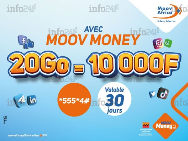 Une mobilisation qui a commencé à faire bouger les lignes. Ce dimanche, Moov Africa Gabon Telecom a annoncé bousculer ses prix en data. « 𝙀𝙣𝙘𝙤𝙧𝙚 𝙙𝙪 𝙣𝙤𝙪𝙫𝙚𝙖𝙪. La générosité continue avec Moov Africa ! Profitez de la nouvelle grille internet sur Moov Money : Achetez 𝐥𝐞 𝐟𝐨𝐫𝐟𝐚𝐢𝐭 𝐝𝐞 𝟏𝟎.𝟎𝟎𝟎𝐅 et bénéficiez de 𝟐𝟎𝐆𝐨 𝐯𝐚𝐥𝐚𝐛𝐥𝐞 𝟑𝟎 𝐣𝐨𝐮𝐫𝐬 », a annoncé tôt ce dimanche matin le leader de la téléphonie mobile au Gabon pour contenter ses clients.