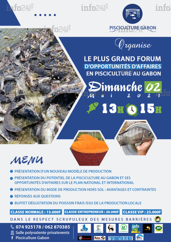 Interrogé par la rédaction d’Info241, Prince Cédric Evouna responsable de Pisciculture Gabon qui organise l’évènement économique, précise que ce forum d’affaires se déroulera sous forme de séminaire. « Il aura pour objectif de mettre en avant le potentiel et les opportunités d’affaires que nous offre ce secteur sur le plan national et international. Mais aussi comment allons nous restructurer cette industrie en interne, produire des poissons de qualité à moindre coût pour concurrencer ceux importé », a-t-il indiqué.