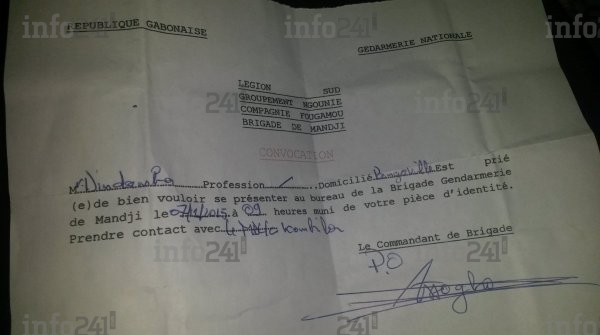 Une photographie de la convocation de la gendarmerie locale
