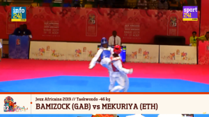 Le combat de Taekwondo entre le Gabonais Anthony OBAME et le Burkinabé Aboubacar DRABO dans la catégorie des +87 kg.... 6:04 p.m.