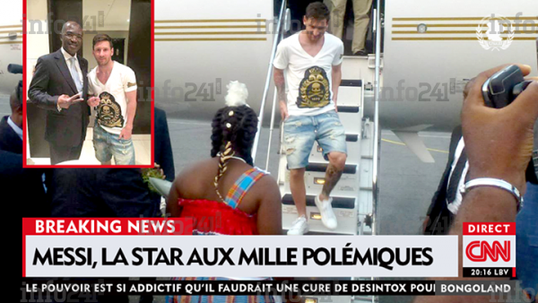 Où l’insouciant Lionel Messi, s’est donné en spectacle irrespectueux pour la nation gabonaise avec un accoutrement décousu. Et pourtant reçu avec les honneurs d’un chef d’Etat, tapis rouge, accueil des ministres de la République, du cabinet de la Présidence de la République. Bain de foule à la gabonaise, avec étonnamment pour chauffeur Ali Bongo lui-même.