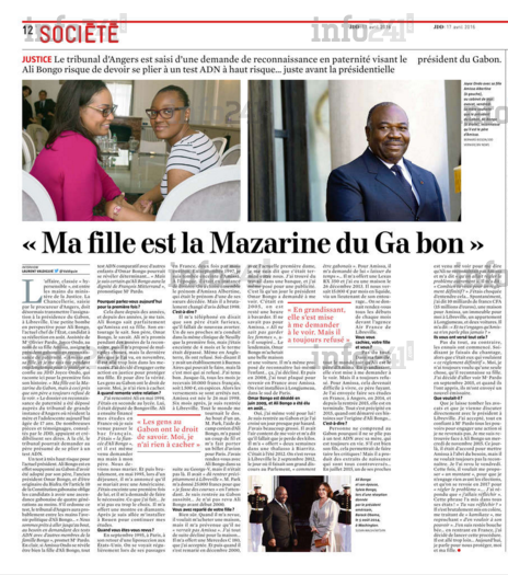Ali Bongo qui refuserait toujours de voir sa « fille », aurait tenté d’acheter le silence de la mère en l’offrant une maison. Ce qu’elle refusera au détriment d’une Mercedes C180 ! La mère Joyce Gennifer Ondo vivant en France actuellement, assigne le président gabonais en justice. La Chancellerie française, saisie par le procureur d’Angers, doit désormais transmettre l’assignation à la présidence du Gabon, à Libreville.