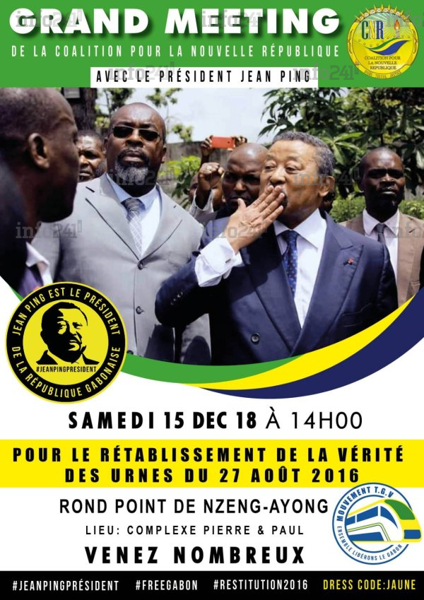 Et de conclure : « Je serai devant le peuple gabonais mobilisé, à Nzeng-Ayong, ce samedi 15 décembre 2018 à 14h00 ».