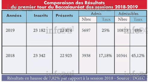 La moisson 2019 du baccalauréat général gabonais est meilleure que les années précédentes avec un taux de réussite de 25% dès le première contre 17,18% l’année dernière. Il faut dire que l’année 2019 est celle qui a connu au Gabon, le moins de perturbation donc une année paisible qui a certainement mieux favoriser les apprentissages.