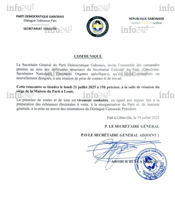 Ce lundi 21 juillet à 15 heures, un rendez-vous capital est fixé dans les locaux du PDG pour une prétendue réunion de « prise de contact et de travail ». À l’origine de cette convocation : Arthur Benga, secrétaire général adjoint 1, fidèle parmi les fidèles de Bongo fils, et signataire d’un communiqué qui sonne comme une provocation. Il y appelle les responsables récemment nommés vendredi par Ali Bongo à se présenter à la Maison du Parti, pourtant passée sous l’autorité de Blaise Louembé.