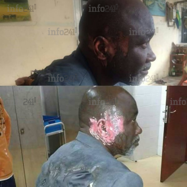 L’autre incompréhension réside sur la nature des armes employées par la police pour disperser les manifestants. La sempiternelle répression policière a occasionné de nombreux blessés. Dont ce monsieur qui a vu sa veste partiellement brûlée et le coté droit du visage brûlé par le contenu des armes de dissuasion utilisées par la police gabonaise.