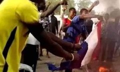 Des milliers de Tchadiens sont sortis, samedi, manifester contre la politique française au Tchad. Le drapeau russe a...