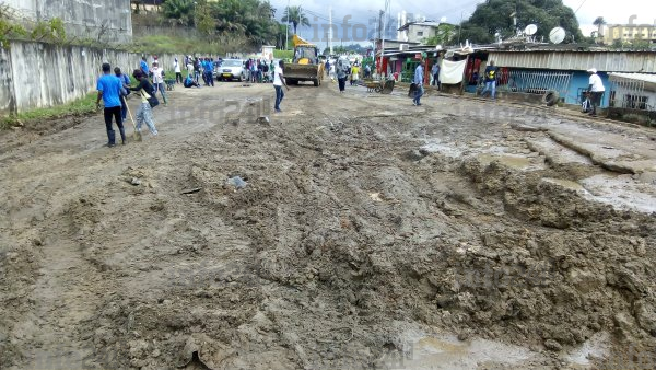 Le quartier Venez-voir n’est pas resté en marge de la journée citoyenne célébré samedi. L’AJEV s’est déployée sur l’axe menant du quartier Rio aux feux tricolores de la Peyrie. Sur cette voie, des jeunes équipés de matériels adéquats et vêtus des tee-shirts sur lesquels on pouvait lire « Ali », ont effectué à cœur joie des nombreux travaux. Parmi eux : déboucher les caniveaux pour une meilleure circulation des eaux usées, ramassages d’ordures mais surtout procédé à des remblais de terre sur une route défectueuse pour faciliter le passage des automobilistes et des piétons.