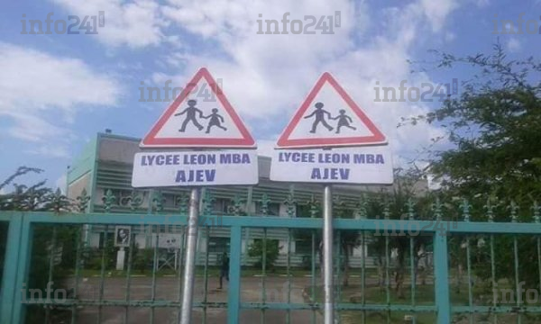 Les panneaux de signalisation publicitaire de l’AJEV ici au lycée Léon Mba
