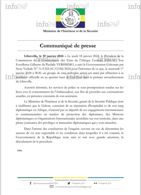Le communiqué des autorités gabonaises