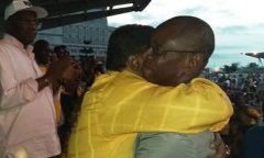 Chaude accolade entre Jean Ping et Léon Paul Ngoulakia hier soir à Franceville, lors du meeting de l’opposition unie.... 6:04 p.m.