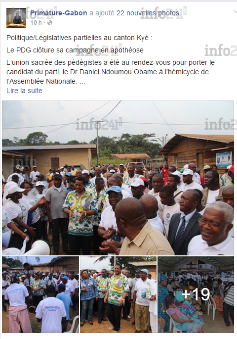 Si le soutien de Daniel Ona Ondo à son homonyme Woleu-ntemois, Daniel Ndoumou Obame, est bien dans l’ordre des choses, celui de la Primature l’est nullement ! Sinon comment comprendre que la page Facebook officielle du chef du gouvernement gabonais s’en vante par plusieurs posts qui n’y ont nullement leur place. Cela fait-il partie des activités du gouvernement de la République ? Quid du mélange de genre propre à cette « démocratie » tropicale qui n’est pas exorcisée de ses démons issus de la fin du parti unique.
