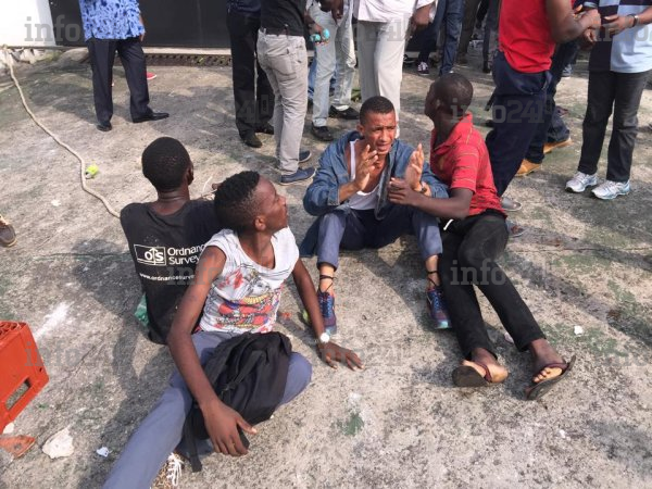 Quelques militants du front alertés ont pu, selon Jean Ping cité par l’AFP, « livré bataille et nous avons pu prendre certains d’entre eux ». Le spectacle se serait produit alors qu’un bataillon de la gendarmerie se situait à 100m des lieux sans aucune réaction de leur part. Les visiteurs impromptus ont été déshabillés et mis en caleçons par les militants avant d’être remis à la police judiciaire qui s’est rendue sur place.