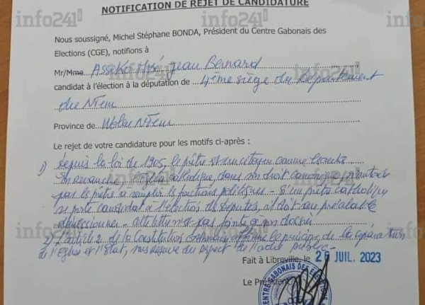 La décision du Conseil Gabonais des Élections de rejeter la candidature de Jean Bernard ASSEKO au nom de la loi française de 1905 est une mesure déconcertante qui remet en question l’intégrité du système démocratique gabonais. En invoquant une loi étrangère qui n’a pas de pertinence juridique dans le contexte gabonais, le Conseil ouvre la porte à l’ingérence politique et met en danger la souveraineté du pays.