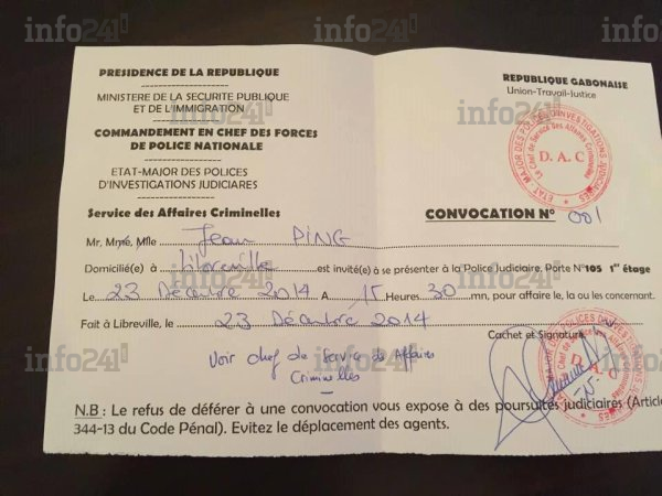 Les leaders du front uni de l’opposition dont Jean Ping, Zacharie Myboto, Didjob Divungui di Ndinge convoqués hier par la police nationale gabonaise, se sont finalement rendus ce matin à 10h00 pour répondre aux questions des enquêteurs sur les événements du 20 décembre.