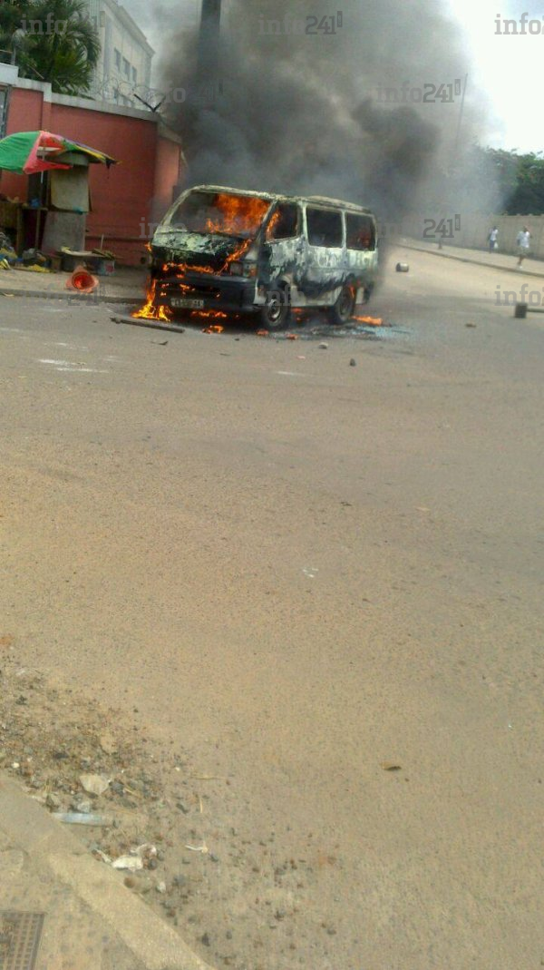Des émeutes ont aussitôt éclaté devant l’université où les manifestants ont brûlé un minibus en stationnement, à la suite des heurts avec les forces de l’ordre. Après des accrochages avec la brigade anti-émeutes, les étudiants ont marché jusqu’à Nkembo, scandant des slogans hostiles au pouvoir d’Ali Bongo Ondimba et renversant des bacs à ordures et kiosques du PMUG à leurs passage.
