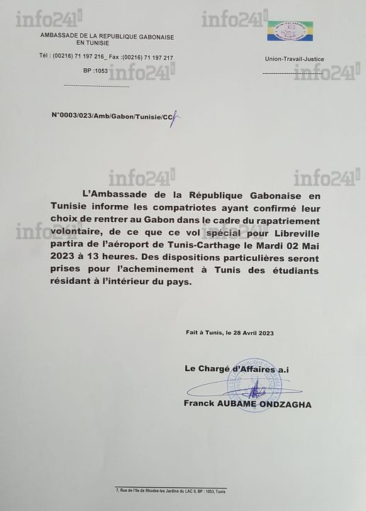 Racisme d’Etat en Tunisie : 48 étudiants gabonais craignant pour leur vie, regagnent Libreville © 2023 D.R./Info241