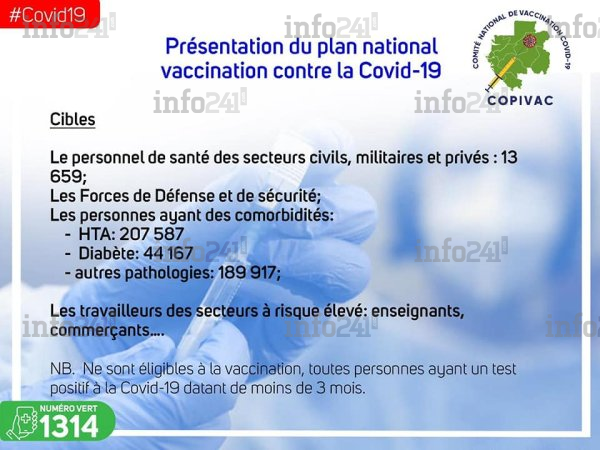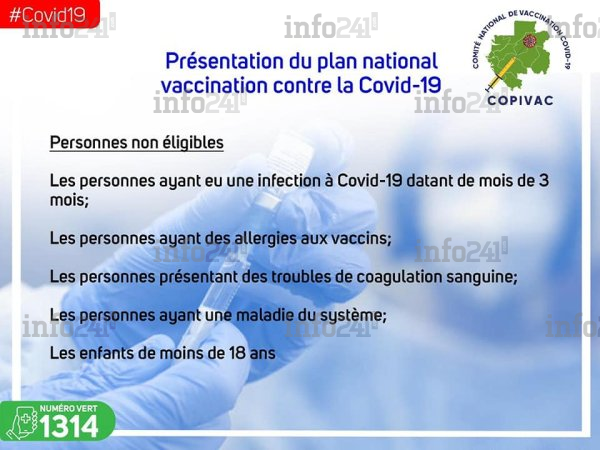 On y a appris que Librevillois auront la primeur de cette vaccination avant ceux de l’intérieur du pays. Ou encore que les enfants de moins de 18 ans, ne sont pas autorisés à se faire vacciner. Le vaccin n’est pas obligatoire. Après la vaccination, il faut 15 minutes d’observation pour s’assurer que la personne vaccinée ne présente aucun effet secondaire. Il faut deux doses de vaccins qui se font dans un intervalle de deux semaines.